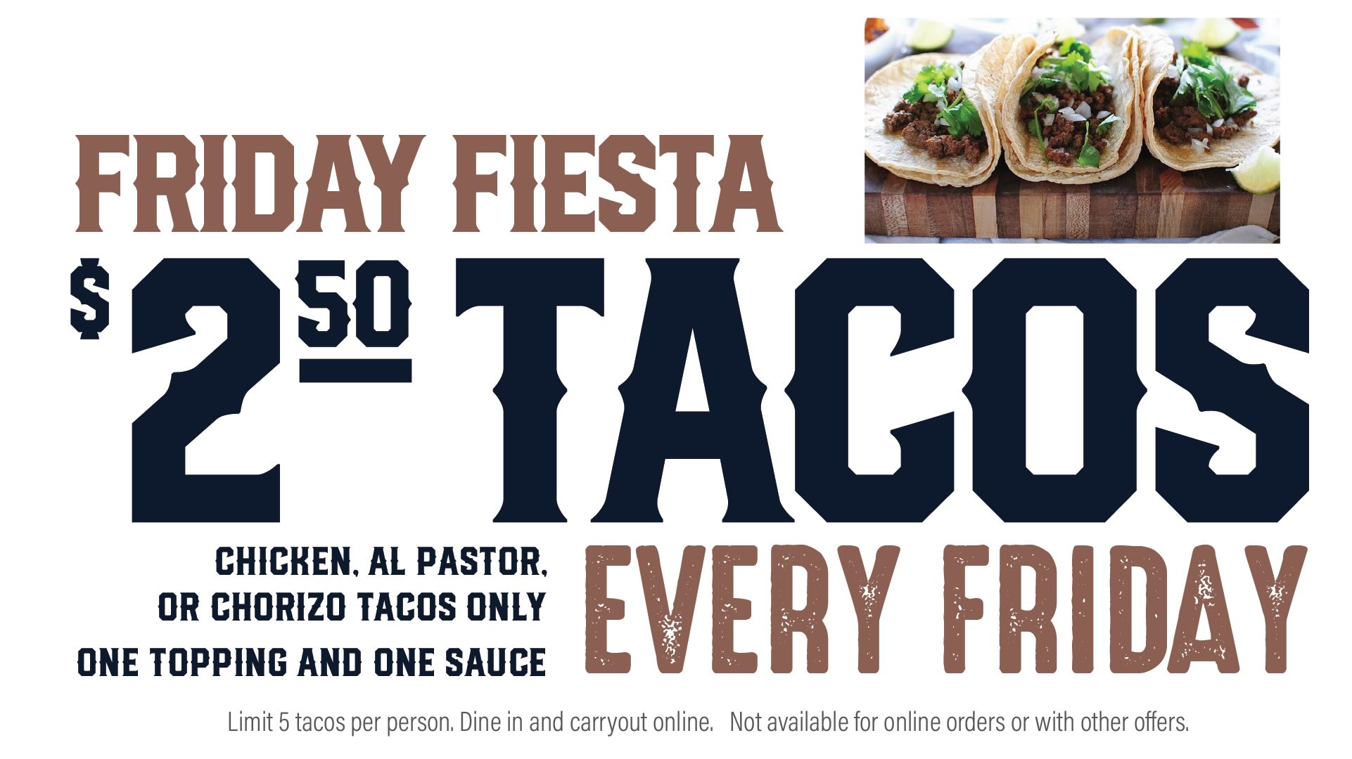 Friday Fiesta- $2.50 Tacos. Annapolis Junction, MD only.